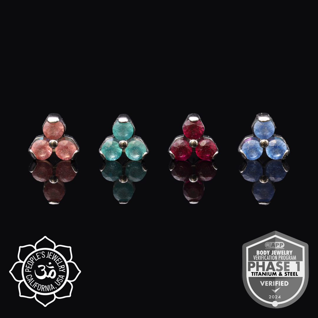 Our Sandblasted Trinity End brings a softer finish to a classic three-stone design. Each gem is sandblasted to create a matte surface that diffuses light, adding depth to the flash and a more dimensional look in wear. The result is subtle, refined, and intentionally understated—perfect for clients who want something different from high-polish shine.